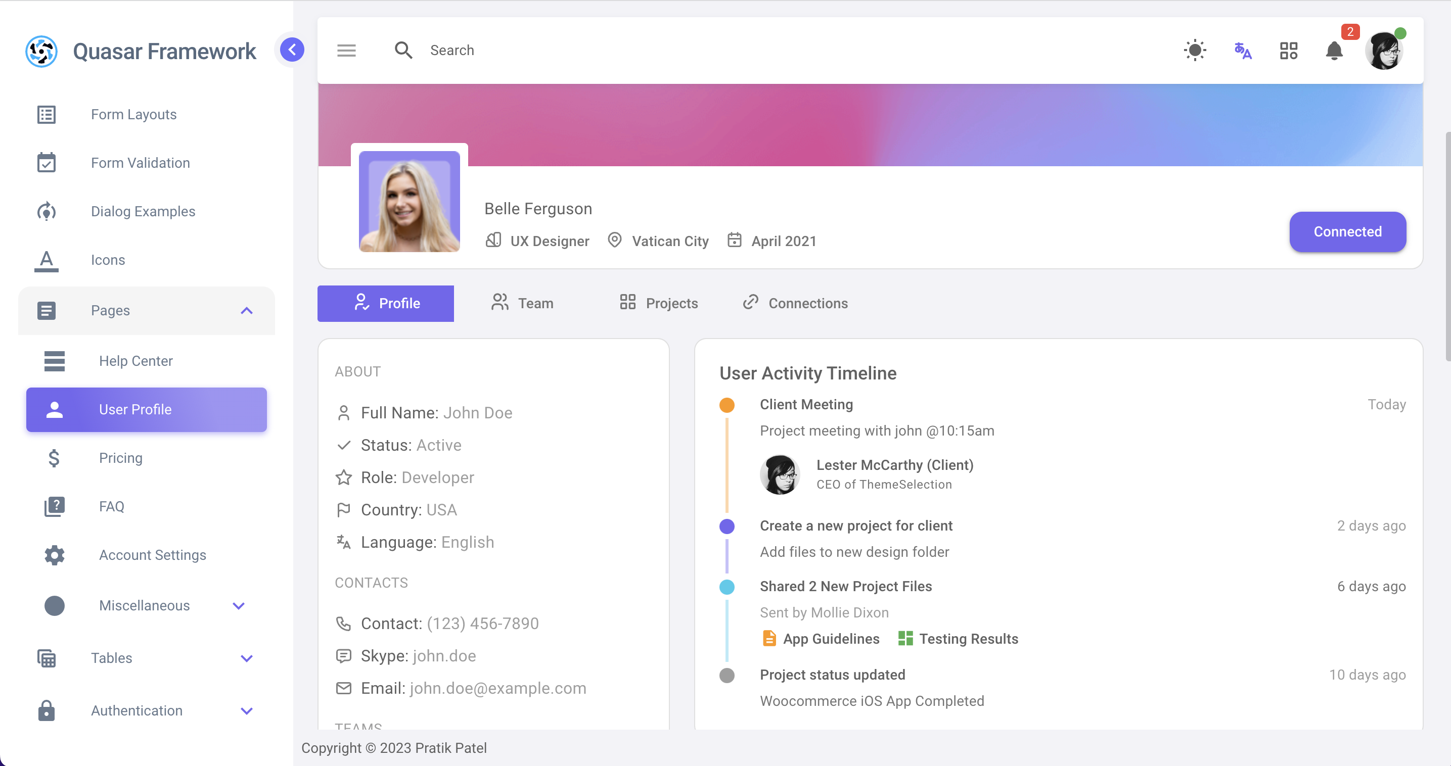 Premium Quasar Admin Template Pratik Patel
