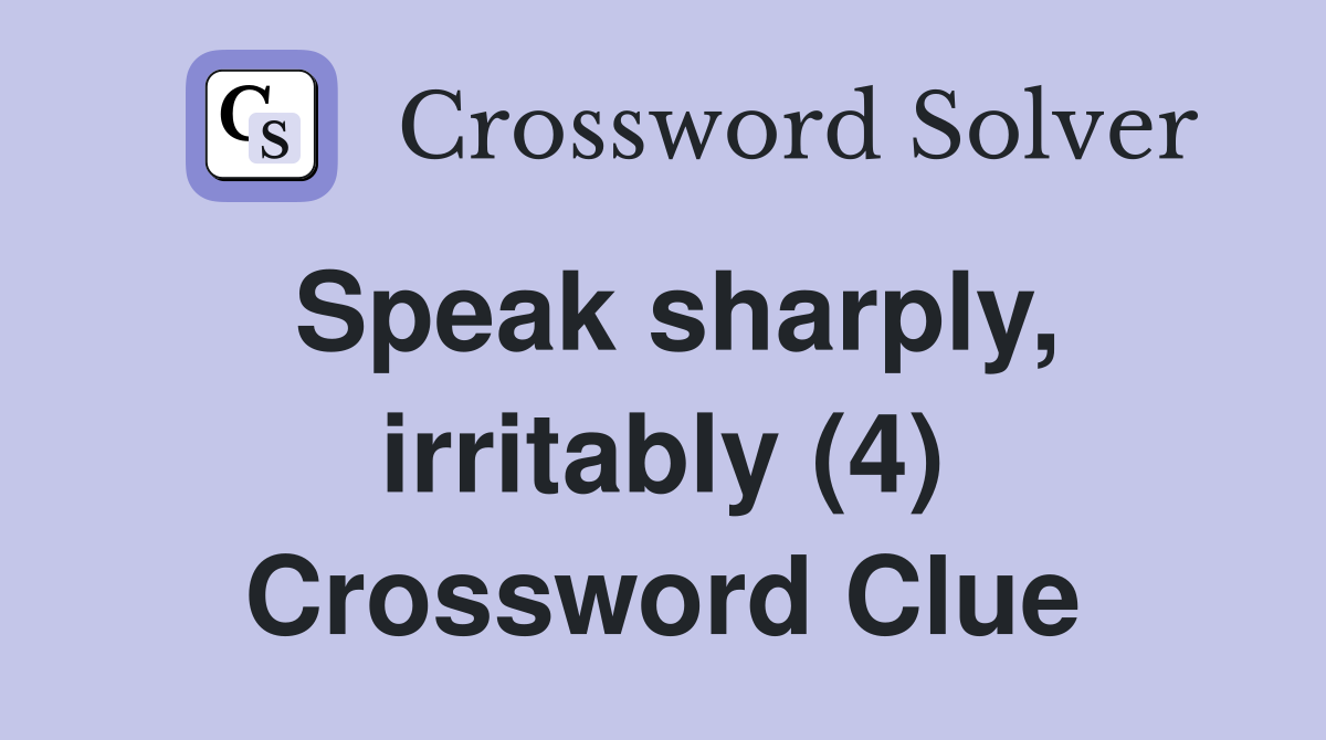 Speak sharply irritably (4) Crossword Clue Answers Crossword Solver