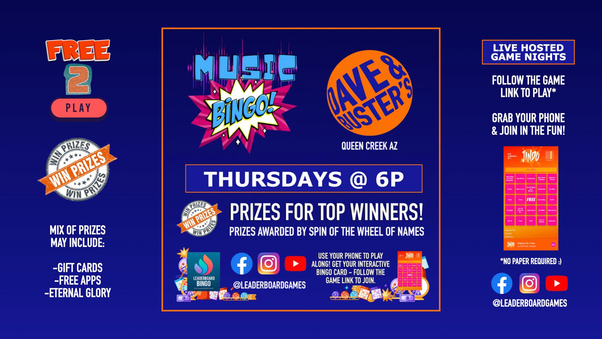 Music BINGO Dave Buster #39 s Queen Creek Tickets Thursday August 28