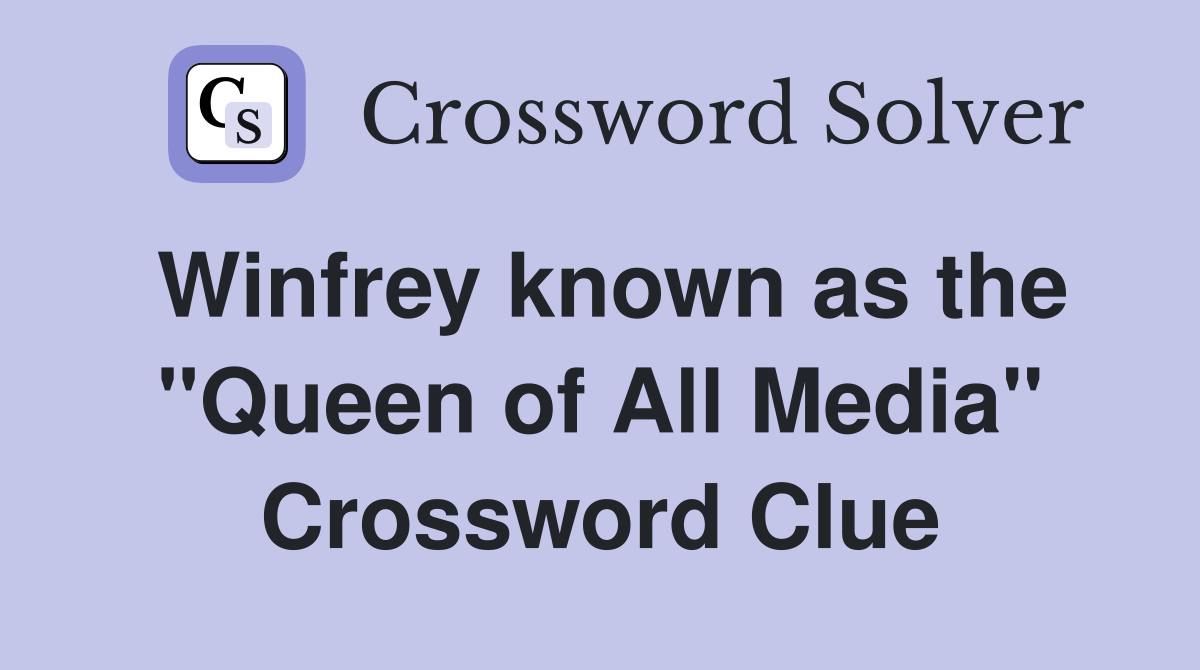 Winfrey known as the quot Queen of All Media quot Crossword Clue Answers