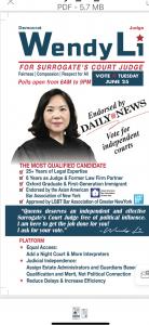 DAILY NEWS ENDORSES JUDGE WENDY LI FOR QUEENS SURROGATE