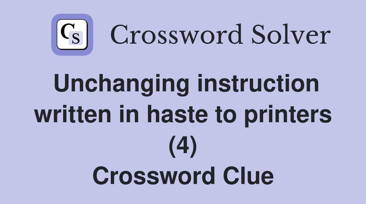 Unchanging instruction written in haste to printers (4) Crossword