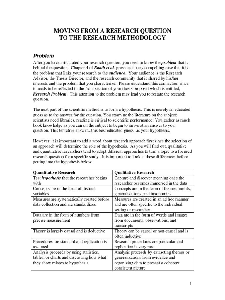 Research Question To Methods PDF Hypothesis Methodology