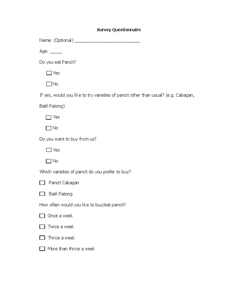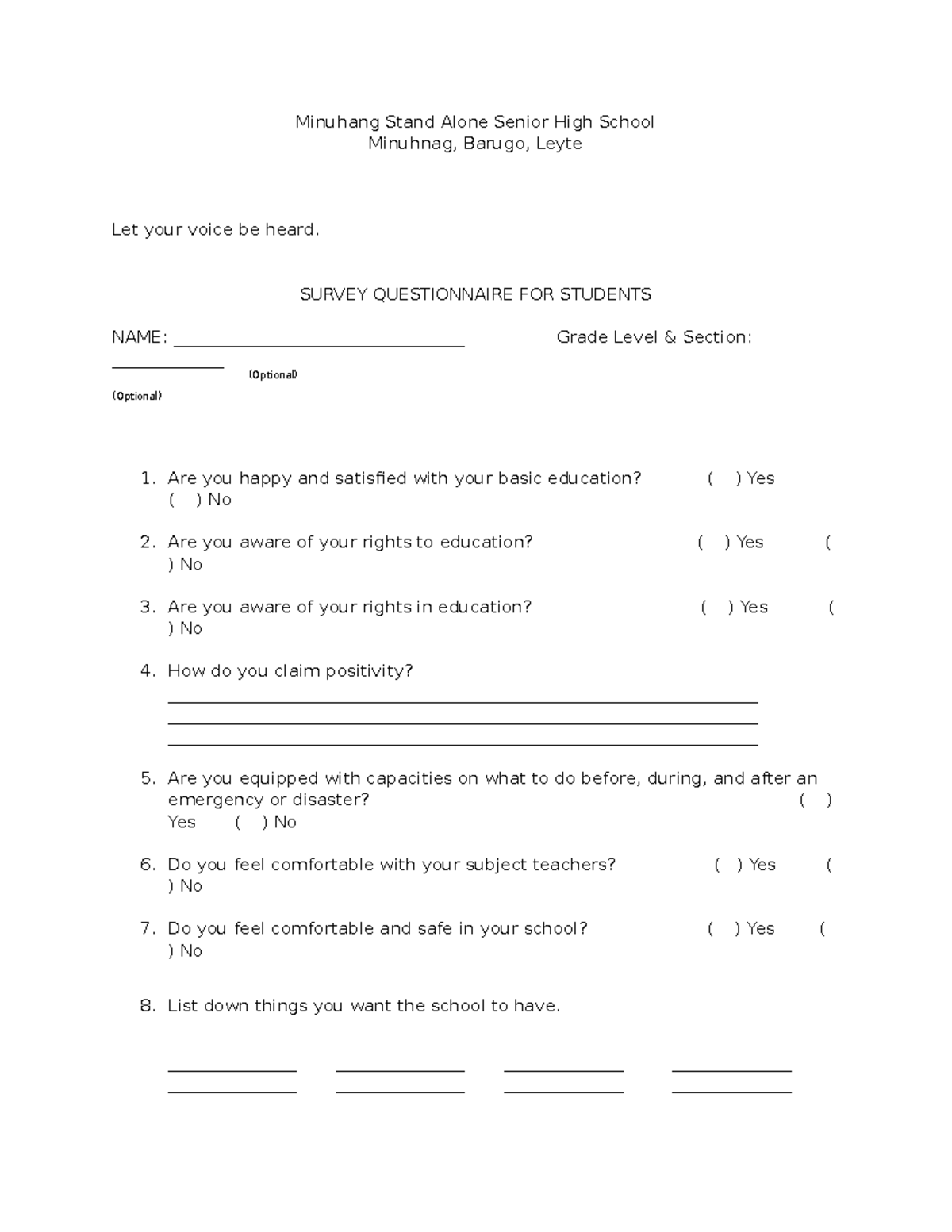 Survey Questionnaire Minuhang Stand Alone Senior High School Minuhnag