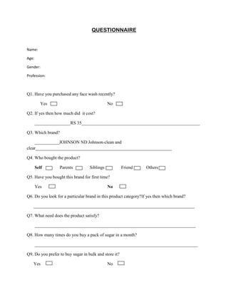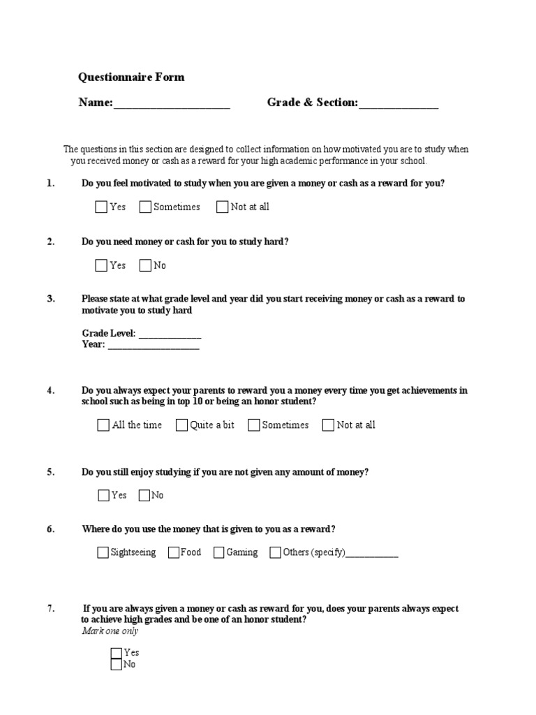 Free Printable Questionnaire Templates Word Excel PDF Examples