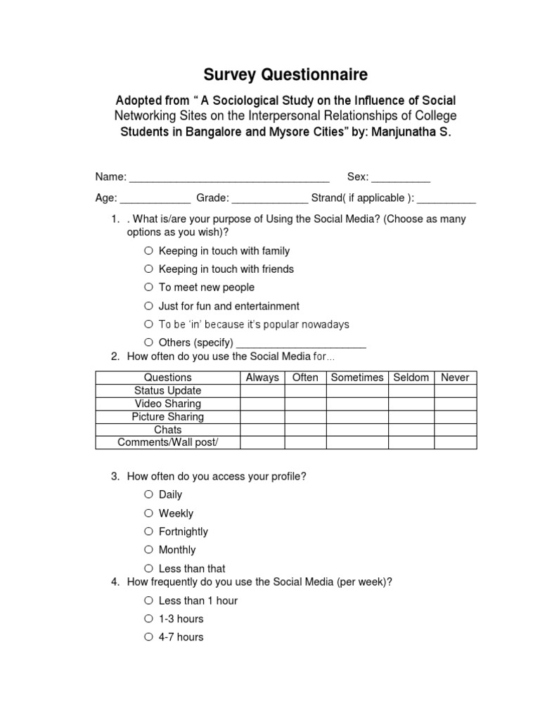 O o o o o O: Survey Questionnaire PDF Social Media Popular