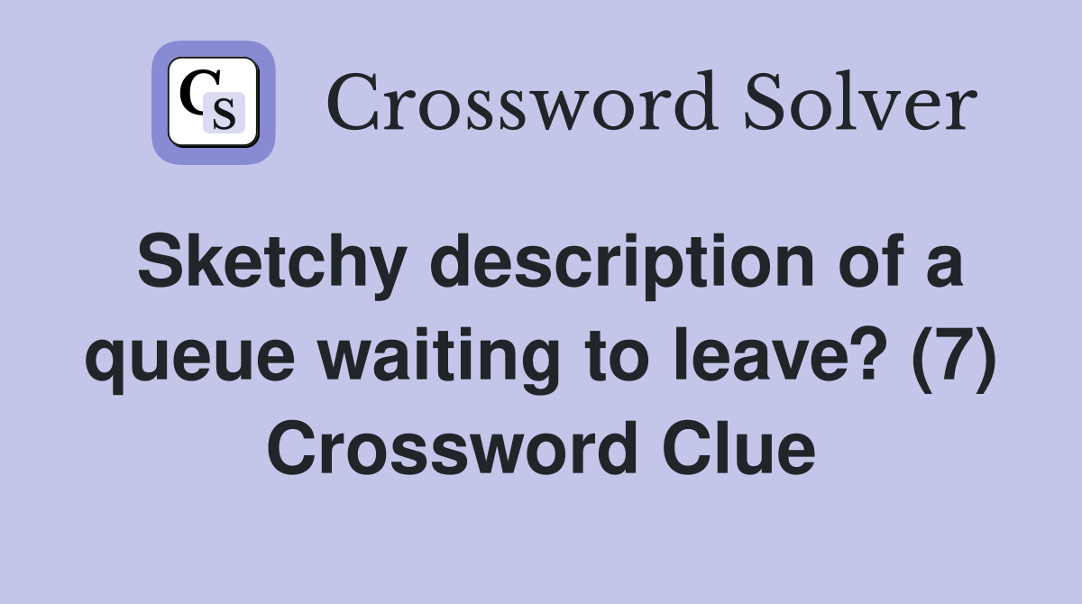 Sketchy description of a queue waiting to leave? (7) Crossword Clue