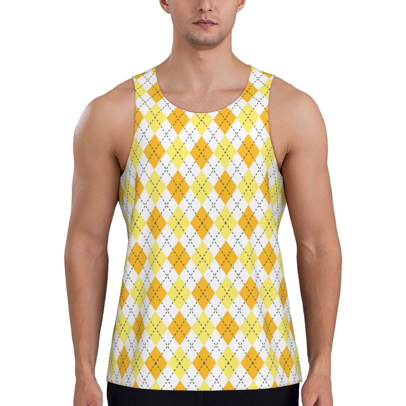 Fuzoiu yellow argyle Men #39 s Workout Tank Tops Sleeveless Gym Shirt Quick