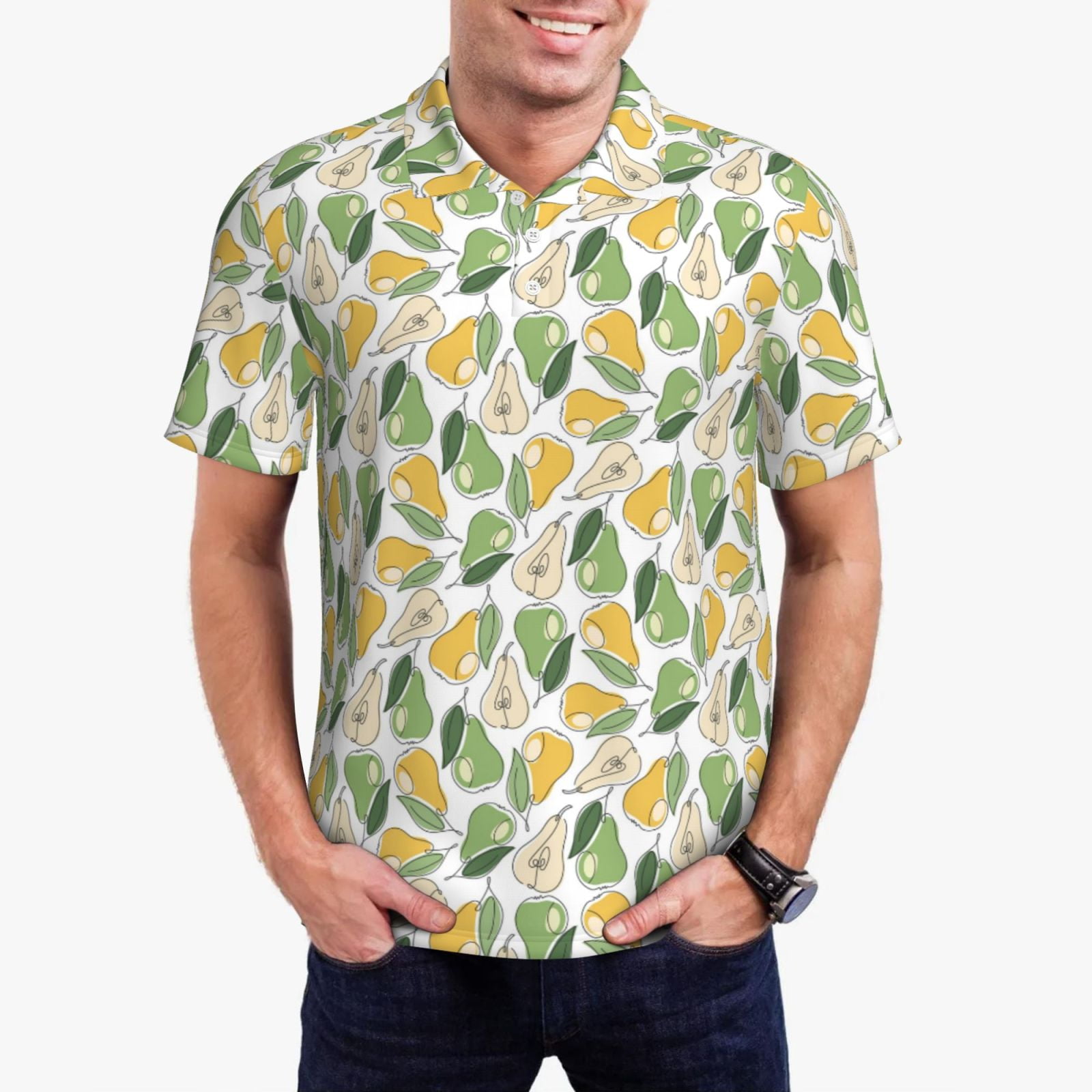 Goofa Fruit Pears Print Mens Polo Shirts Quick Dry Short Sleeve Golf T