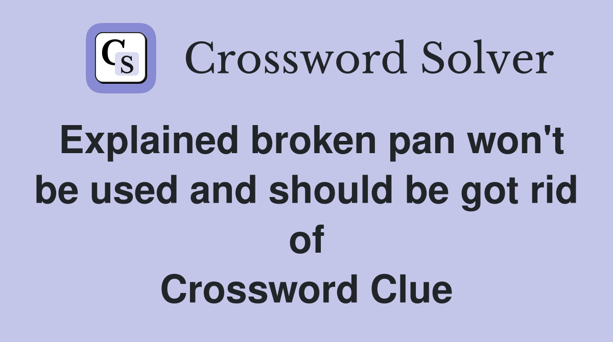 Explained broken pan won #39 t be used and should be got rid of Crossword