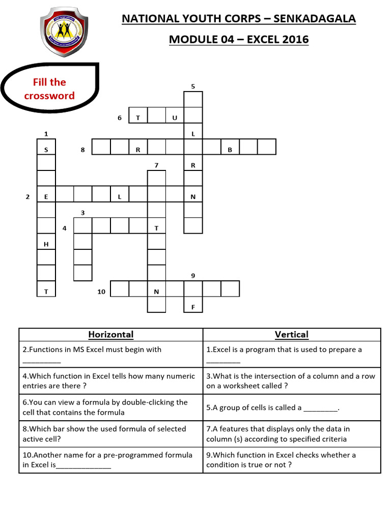excel Crossword