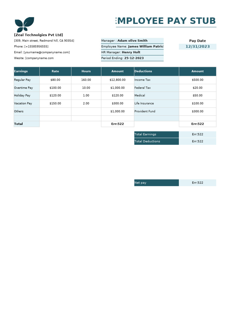 Loon Turquoise Sample Paystub Template Accurate Fast Free