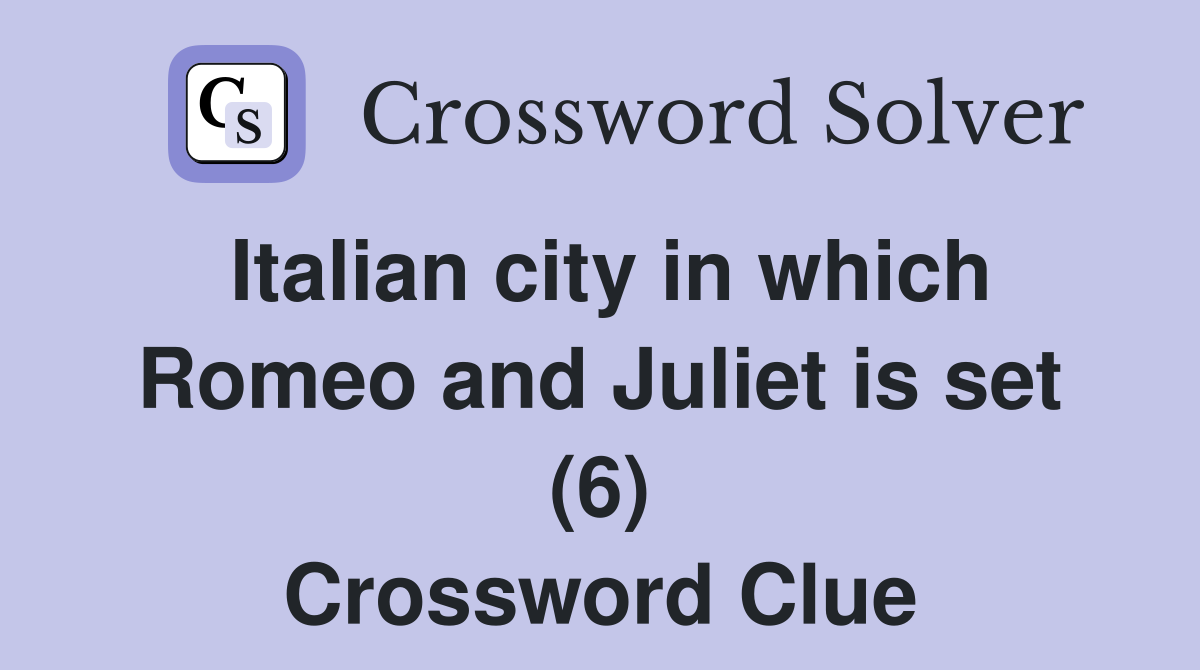 Italian city in which Romeo and Juliet is set (6) Crossword Clue