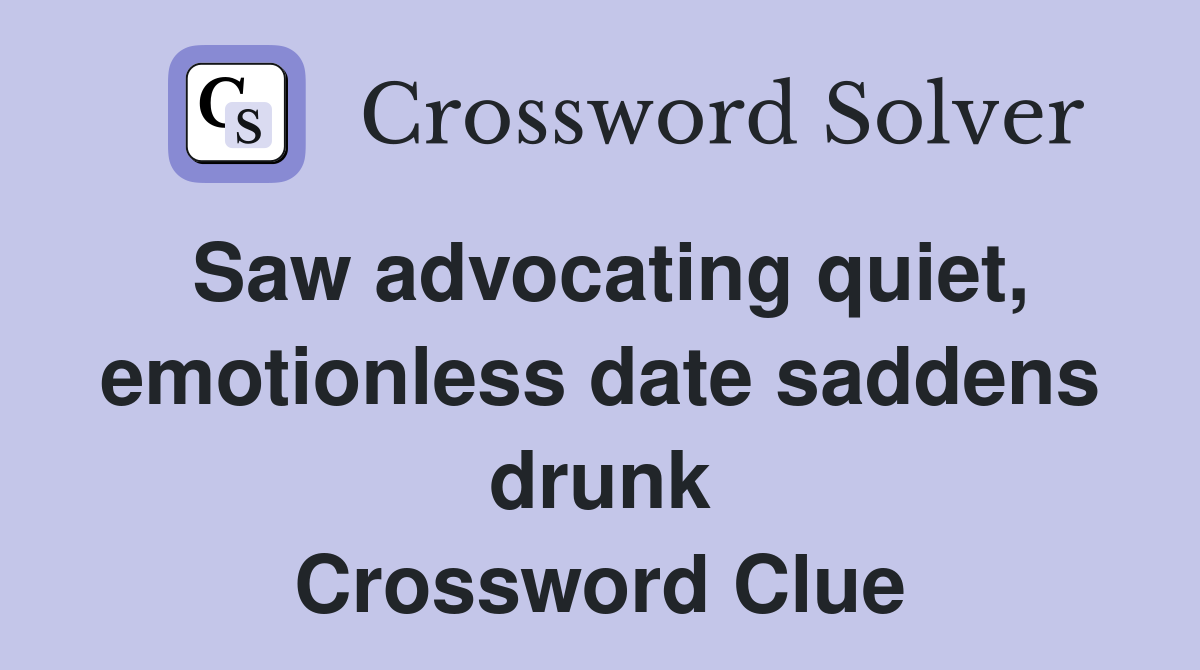 Saw advocating quiet emotionless date saddens drunk Crossword Clue