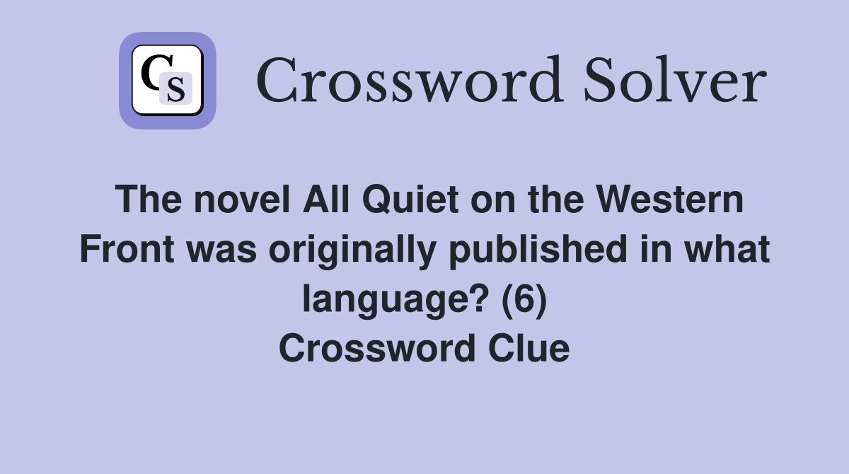 Maria Remarque All Quiet on the Western Front novelist Crossword