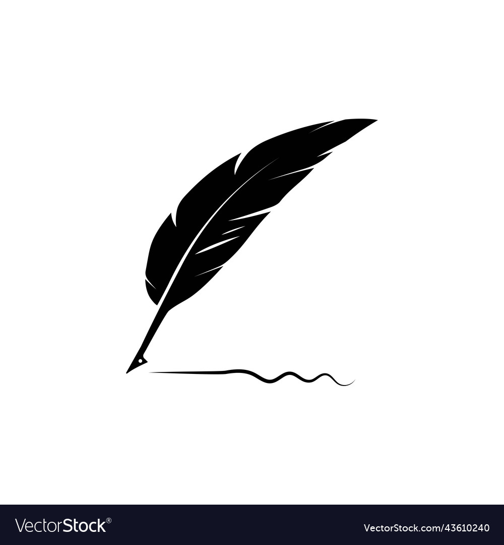 Quill Pen Round Logo Black Feather Symb Graphic by microvectorone