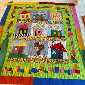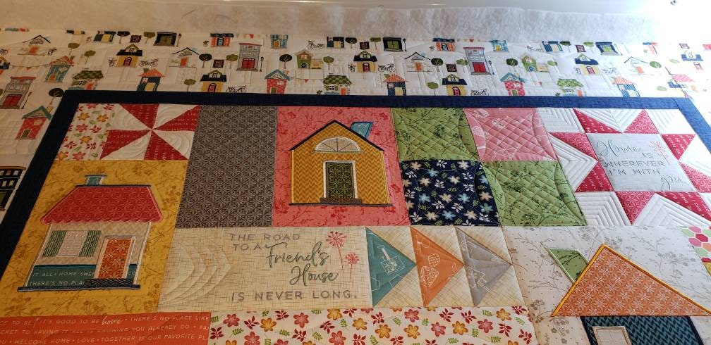 Machine quilting improv houses makes for a very pretty quilt