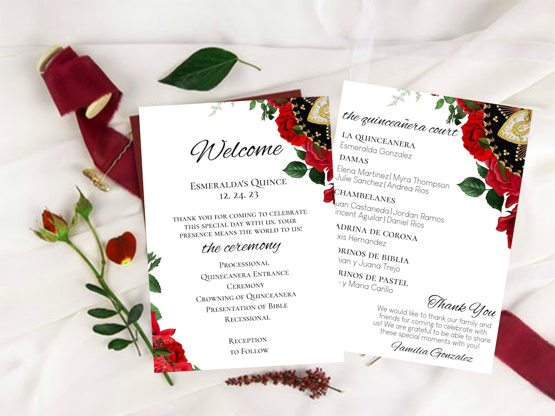 EDITABLE Program Template Red Gold Floral Quinceanera Program Mis
