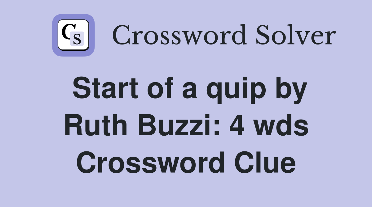 Start of a quip by Ruth Buzzi: 4 wds Crossword Clue Answers