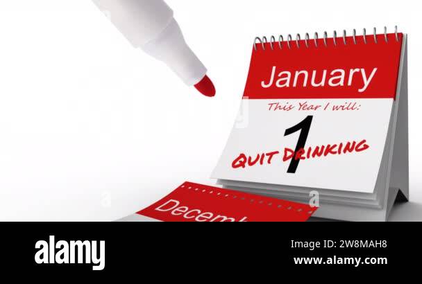 Animation of Red Pen and Quit Drinking Text in Red on January 1st of