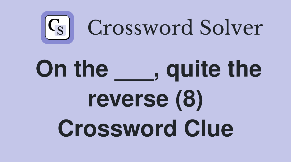 On the quite the reverse (8) Crossword Clue Answers Crossword