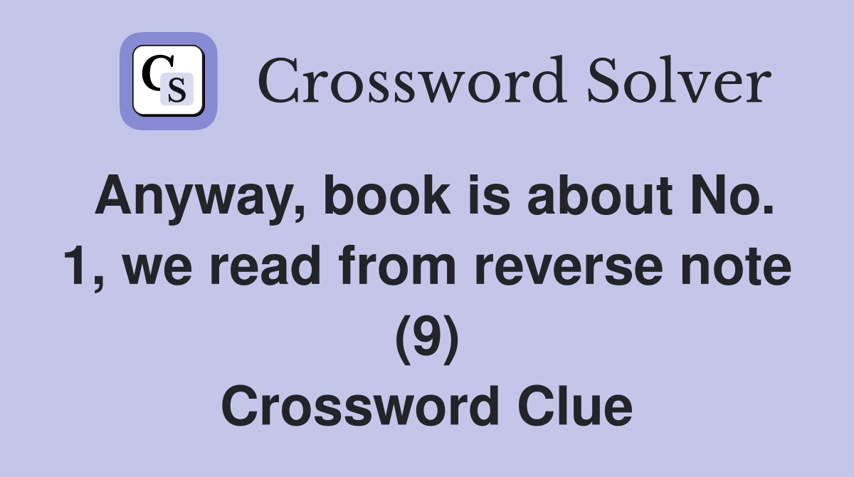 Anyway book is about No 1 we read from reverse note (9) Crossword