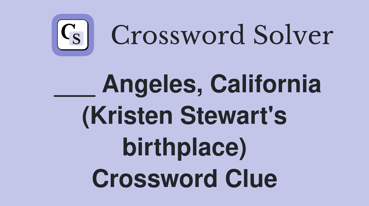 Angeles California (Kristen Stewart #39 s birthplace) Crossword Clue