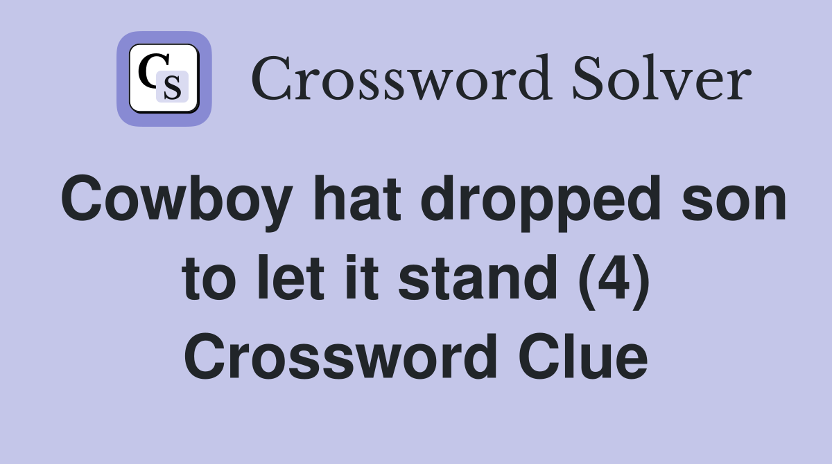 Cowboy hat dropped son to let it stand (4) Crossword Clue Answers