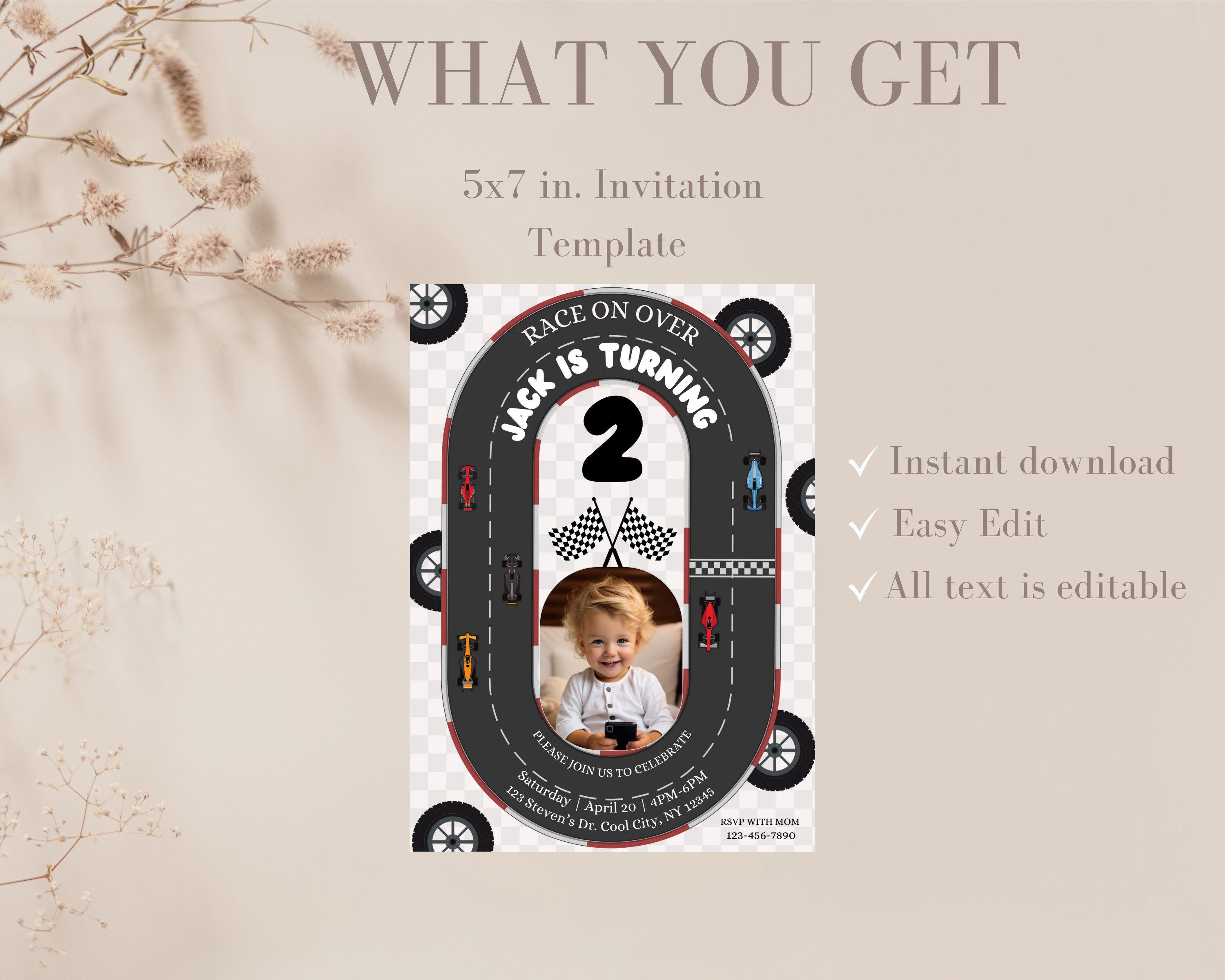 Race Car Birthday Invitation Template Editable Instant Download Etsy UK