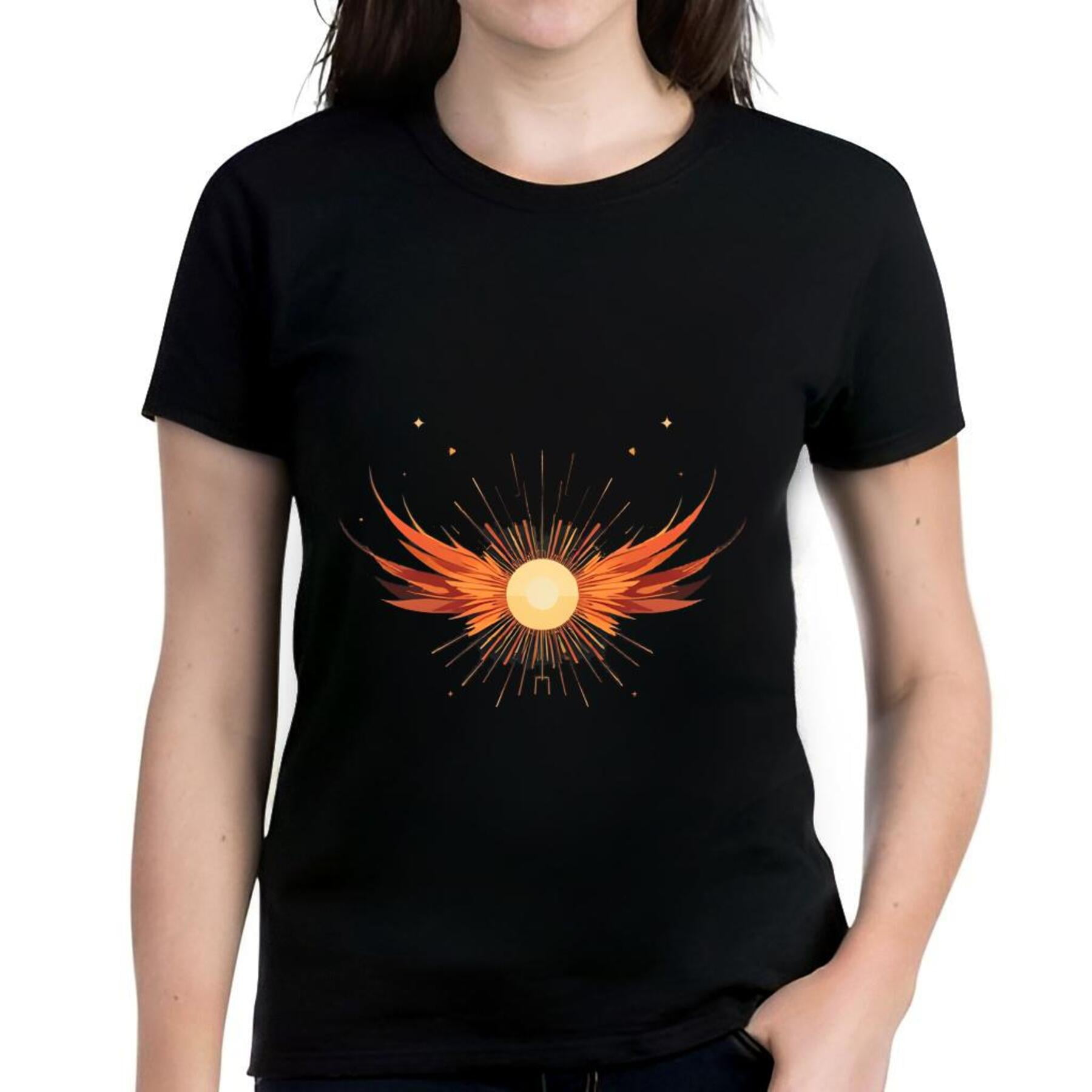 Women #39 s Cotton Short Sleeve T Shirt with Radiant Sun and Stylized