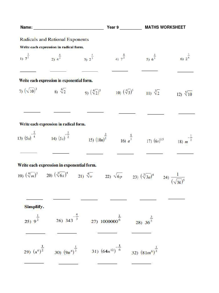 Rational Exponents And Radicals Worksheet Printable And Enjoyable