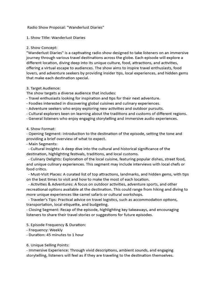 Talk and Music Radio Show Proposal PDF Mass Media Entertainment