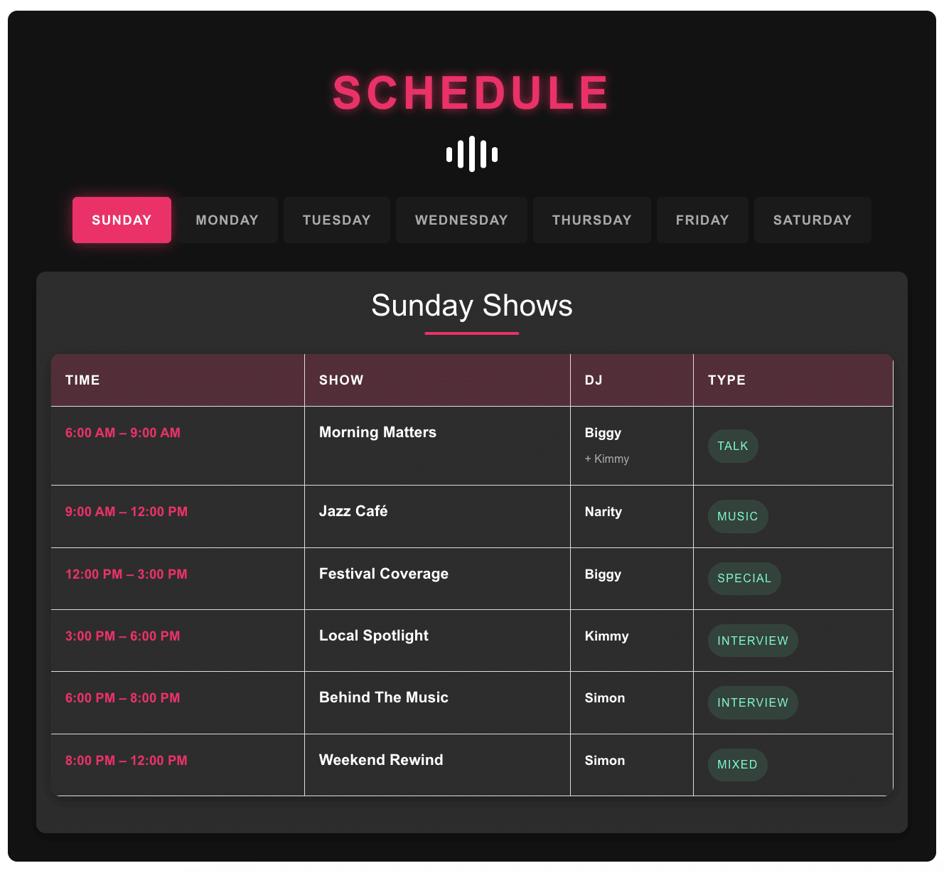 Personalize and get this Gradient Modern Daily Radio Schedule template