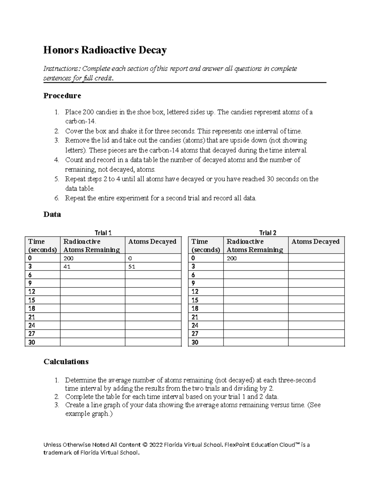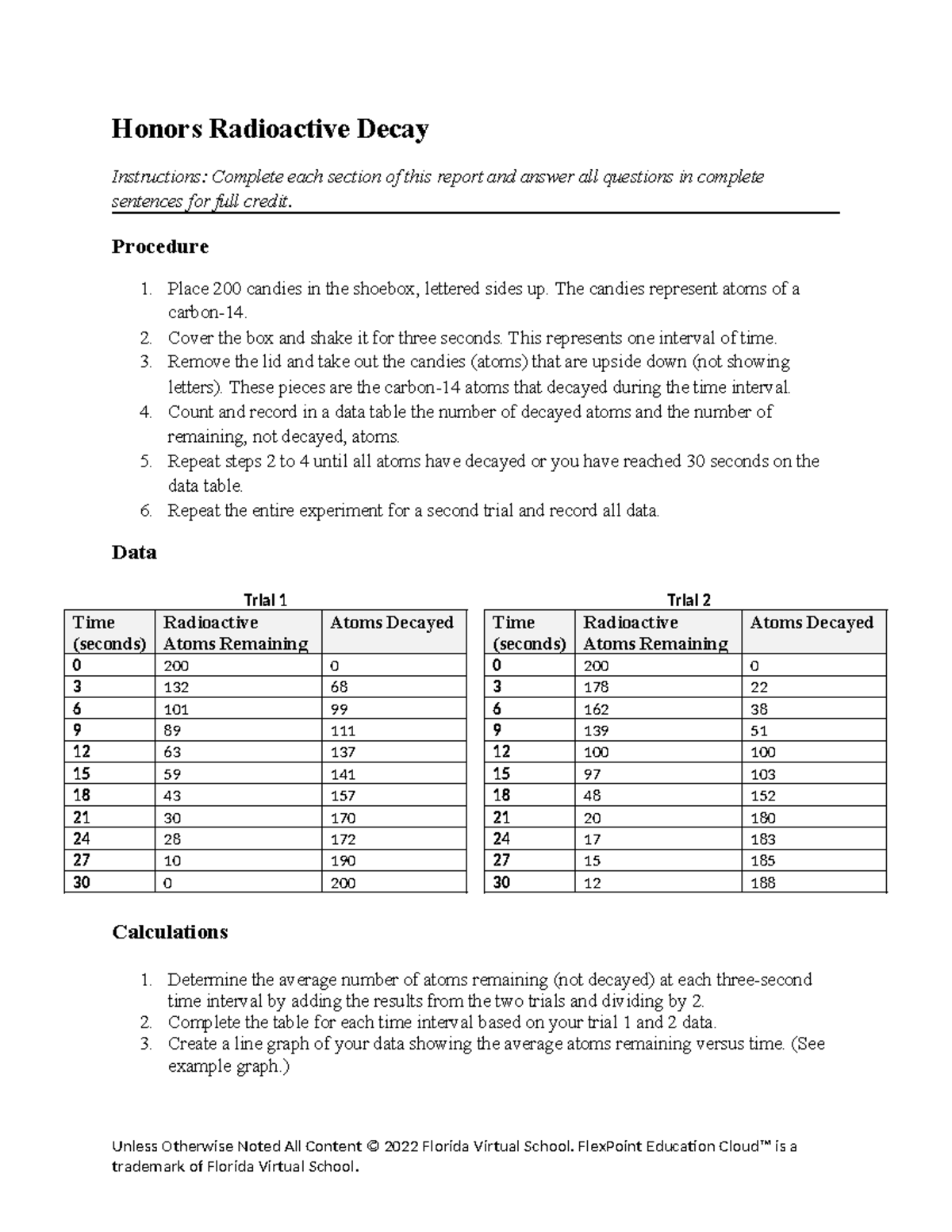 Honors radioactive decay worksheet lab Honors Radioactive Decay