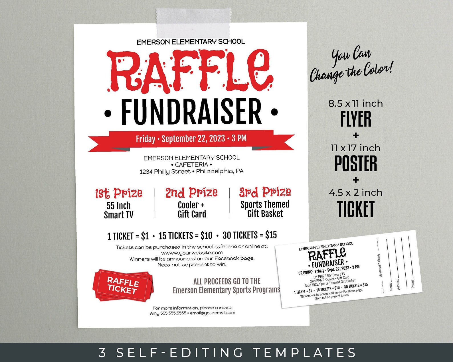 Raffle Fundraiser Bundle Editable TEMPLATES 8 5x11 Flyer 11x17 Poster