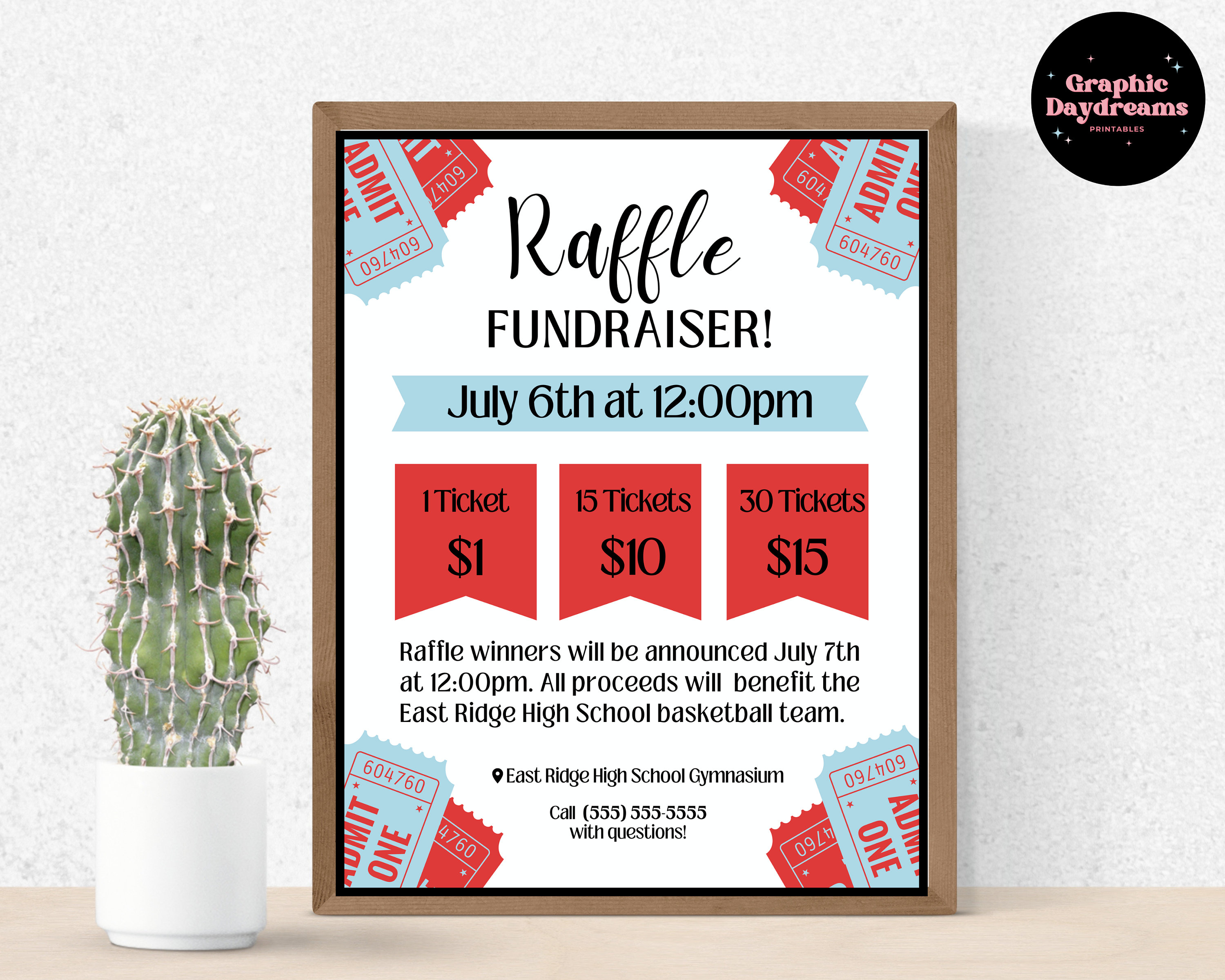 Raffle Fundraiser Flyer Editable Canva Template US Letter Size Etsy