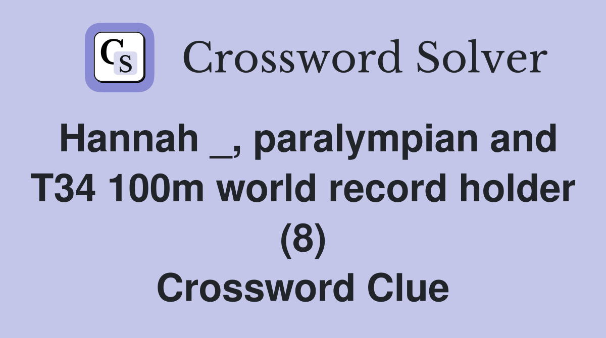 Hannah paralympian and T34 100m world record holder (8) Crossword