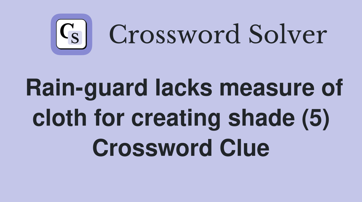 Rain guard lacks measure of cloth for creating shade (5) Crossword