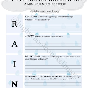 RAIN Mindful Coping Technique Poster for Kids PRINTABLE Etsy