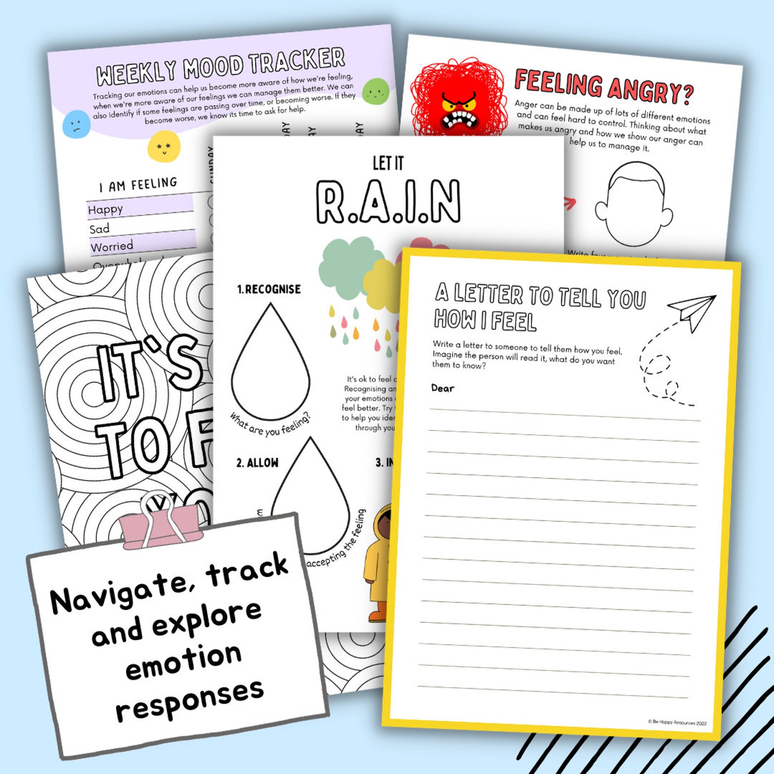 Rain Mindfulness Poster Worksheets Anxiety Workbook Mental Health