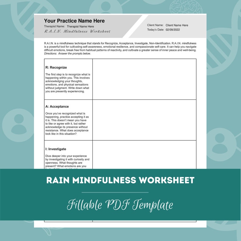 RAIN: Mindfulness Technique Worksheet Therapist Aid