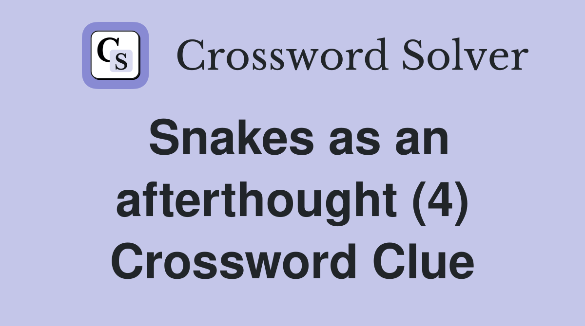 Snakes as an afterthought (4) Crossword Clue Answers Crossword Solver