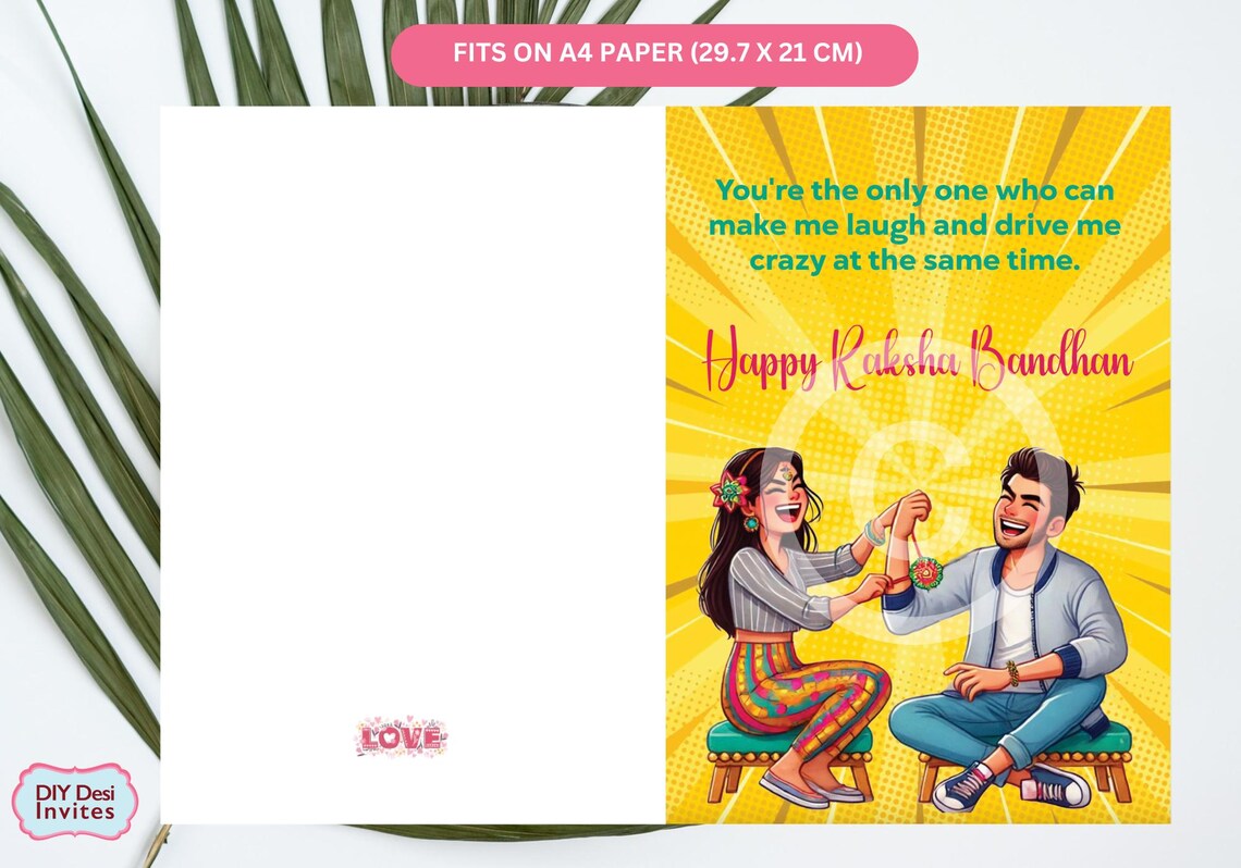 Fun Printable Rakhi Raksha Bandhan Card A4 Digital Download Etsy