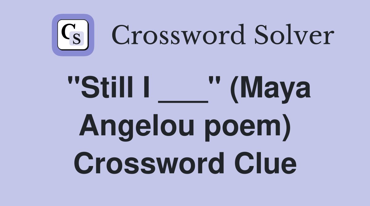 quot Still I quot (Maya Angelou poem) Crossword Clue Answers Crossword