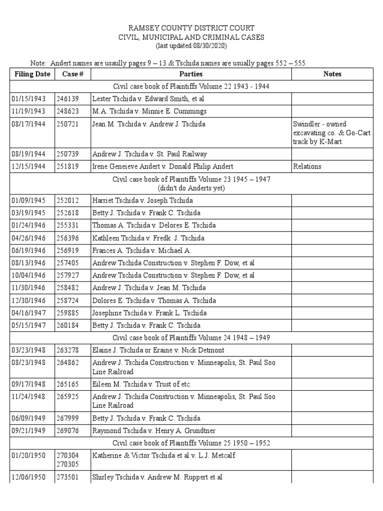 Ramsey County District Court Cases Andert Tschida 1943 1958 PDF