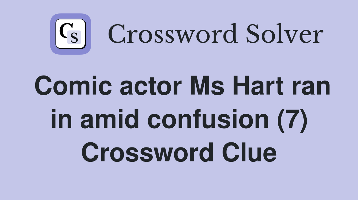Comic actor Ms Hart ran in amid confusion (7) Crossword Clue Answers