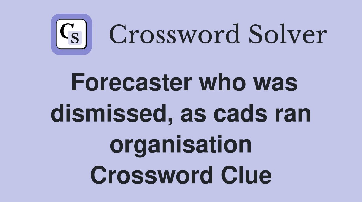 Forecaster who was dismissed as cads ran organisation Crossword Clue