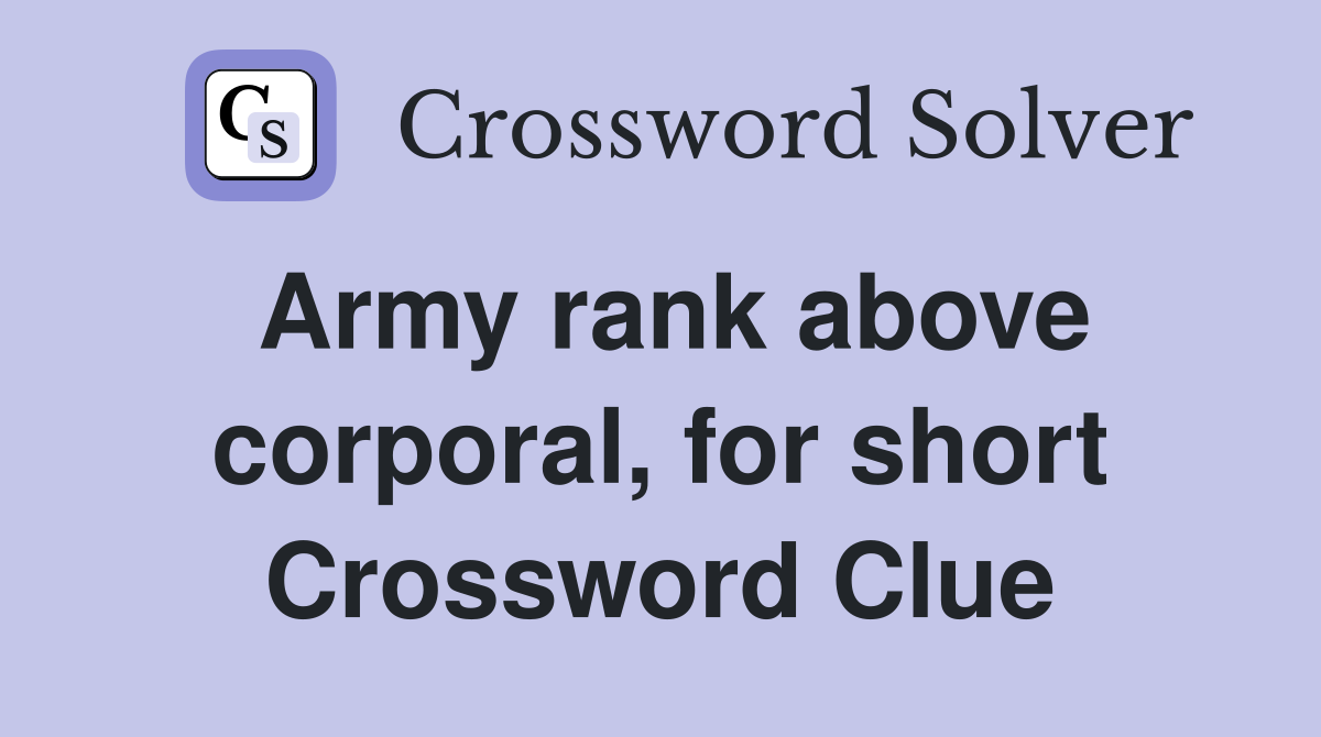 Army rank above corporal: Abbr Crossword Clue Answers Crossword Solver