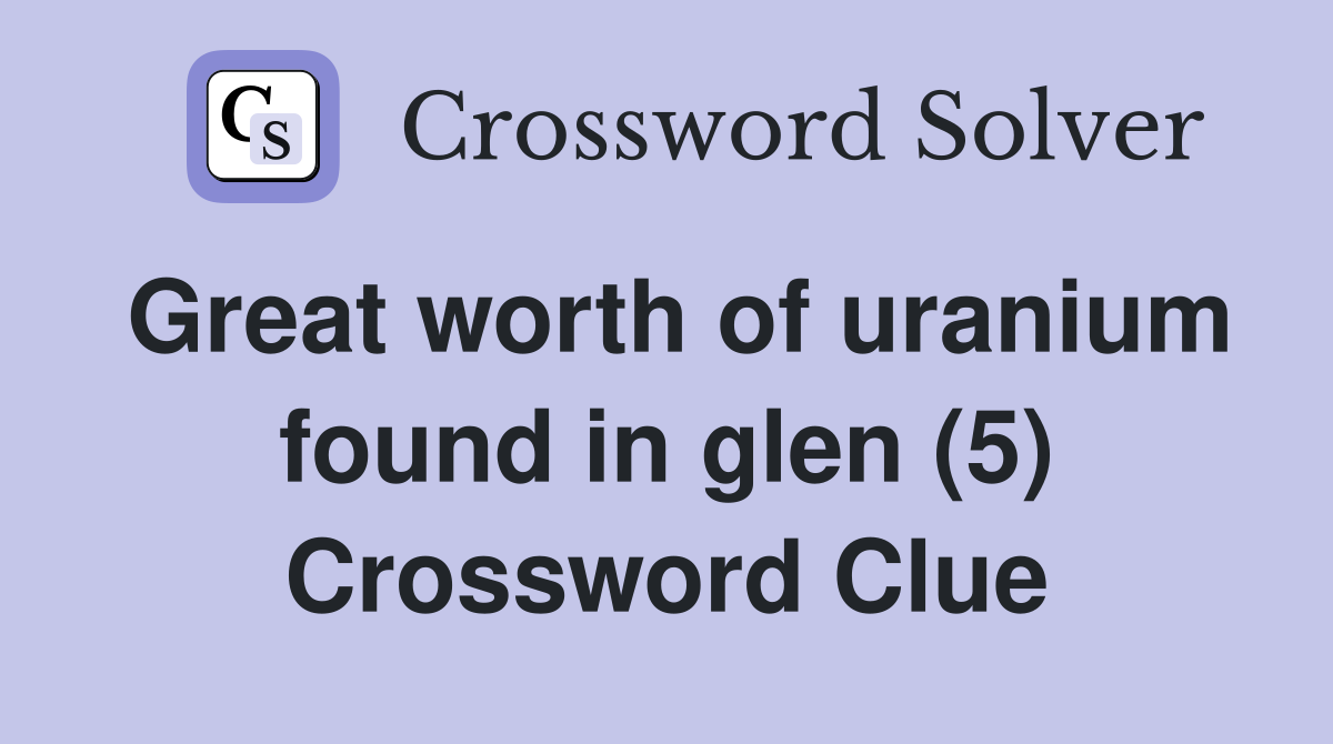 Great worth of uranium found in glen (5) Crossword Clue Answers