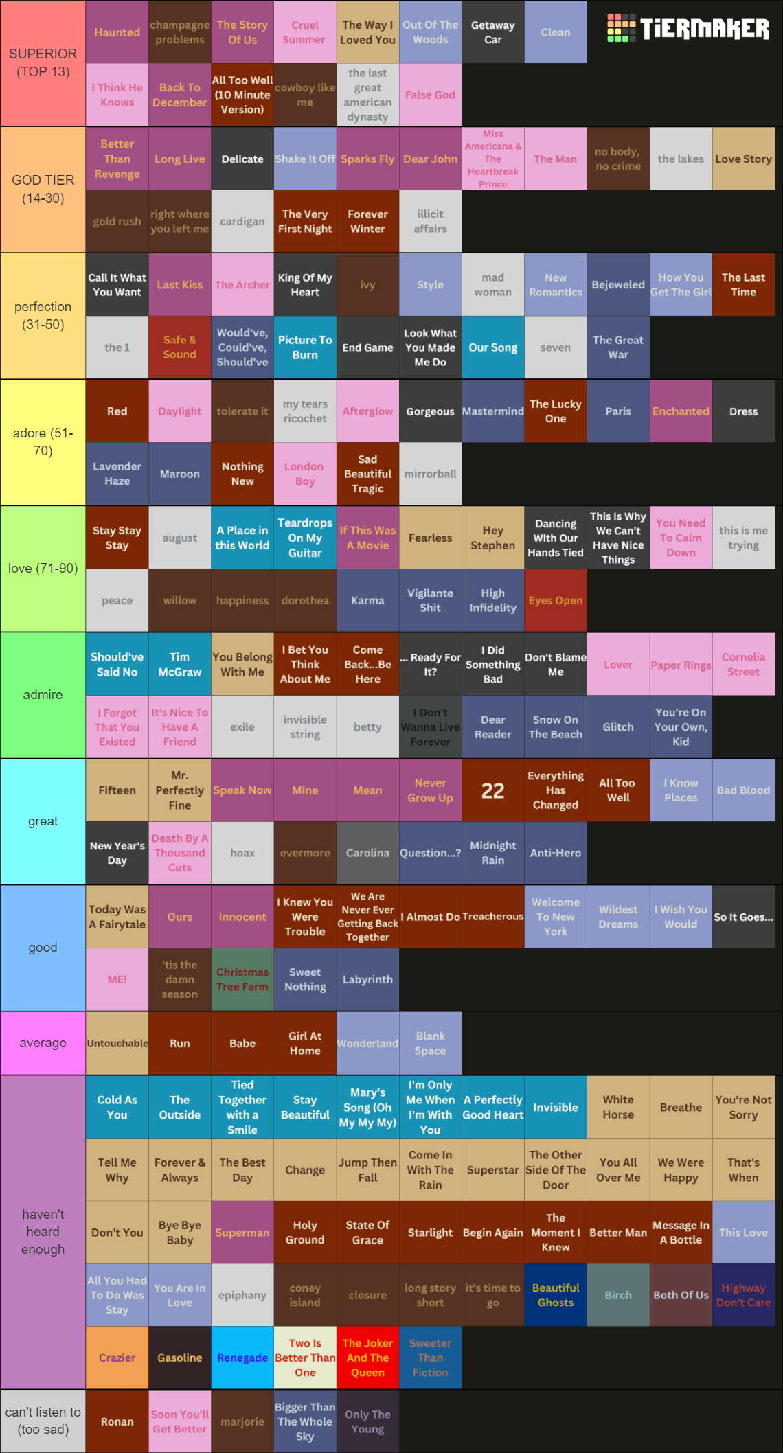 Ranking all Taylor Swift Songs Tier List (Community Rankings) TierMaker